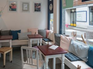 Im Parterre befindet sich das gemütliche Café. Bei uns kann man frühstücken, bei schönem Wetter draussen den Morgenkaffee in der Sonne geniessen, sich mit einem leichten Mittagessen stärken und den Nachmittag bei Kaffee und Kuchen oder einem Apéro geniessen. Unser Angebot ist hausgemacht. Wir servieren nicht nur selbst gebackenen Kuchen und hausgemachte Sirups sondern auch Sandwiches, Salate und Suppen.