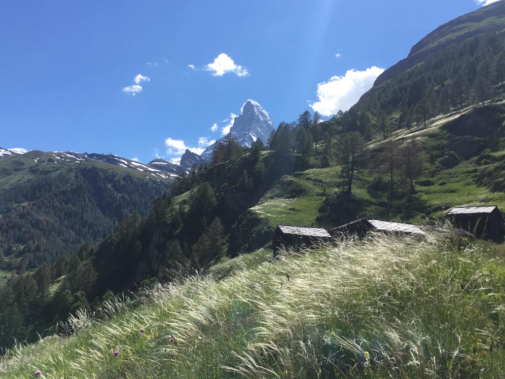 Kurz nach 9 Uhr fahren wir gemütlich hoch Richtung Furi, um den Moos-Trail als Aufwärmrunde ein-, zweimal zu fahren. Auch wenn dieser sehr viel Spass macht, zieht es uns ziemlich bald weiter bis nach Z’Mutt. Das Wetter ist gut, die Aussicht ist schön und so erlauben wir uns, bereits das erste Mal in die «Beiz» zu sitzen. Wir planen schliesslich den ganzen Tag auf dem Bike zu sein, da dürfen die Beizen-Stopps natürlich nicht fehlen. Und die soll man ja auf den ganzen Tag verteilen. 😉