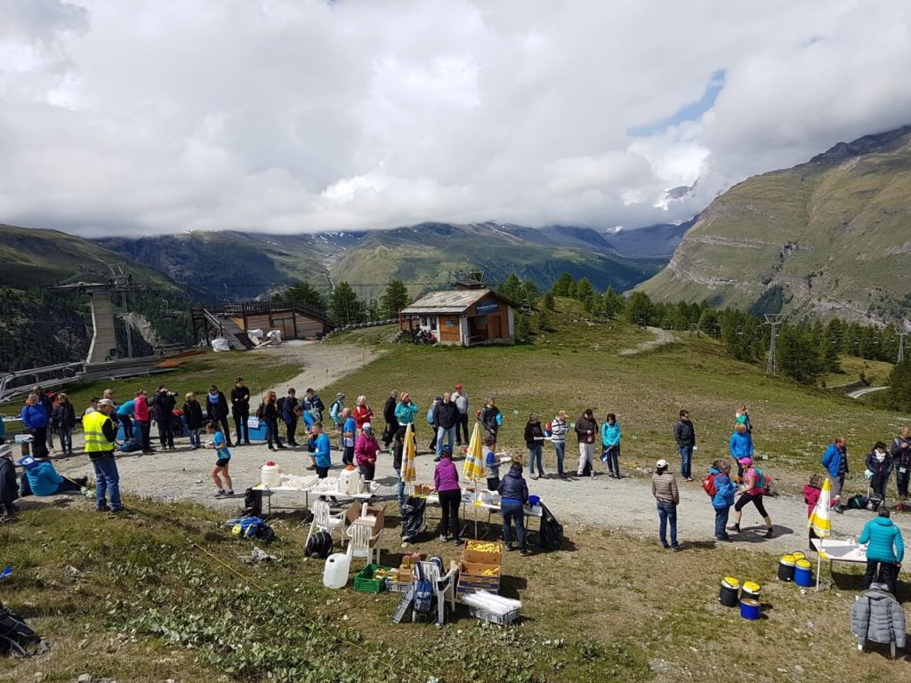 Danach fuhr ich auf Sunnegga und traf dort schon die ersten bekannten Gesichter anderer Begleiter. An dieser Stelle möchte ich mich einmal herzlich bei den freiwilligen Helfern bedanken. Wasser, Cola, Bouillon, Bananen, Toast, Wasserschwämme und so weiter waren vorbereitet. Bei den Verpflegungsstationen wurde den Marathonläufern persönlich Aufmerksamkeit geschenkt. Ihr habt motiviert, bejubelt und umsorgt. Ohne euch Helfer wäre dieser Sport-Event gar nicht erst möglich gewesen. Habt vielen Dank!