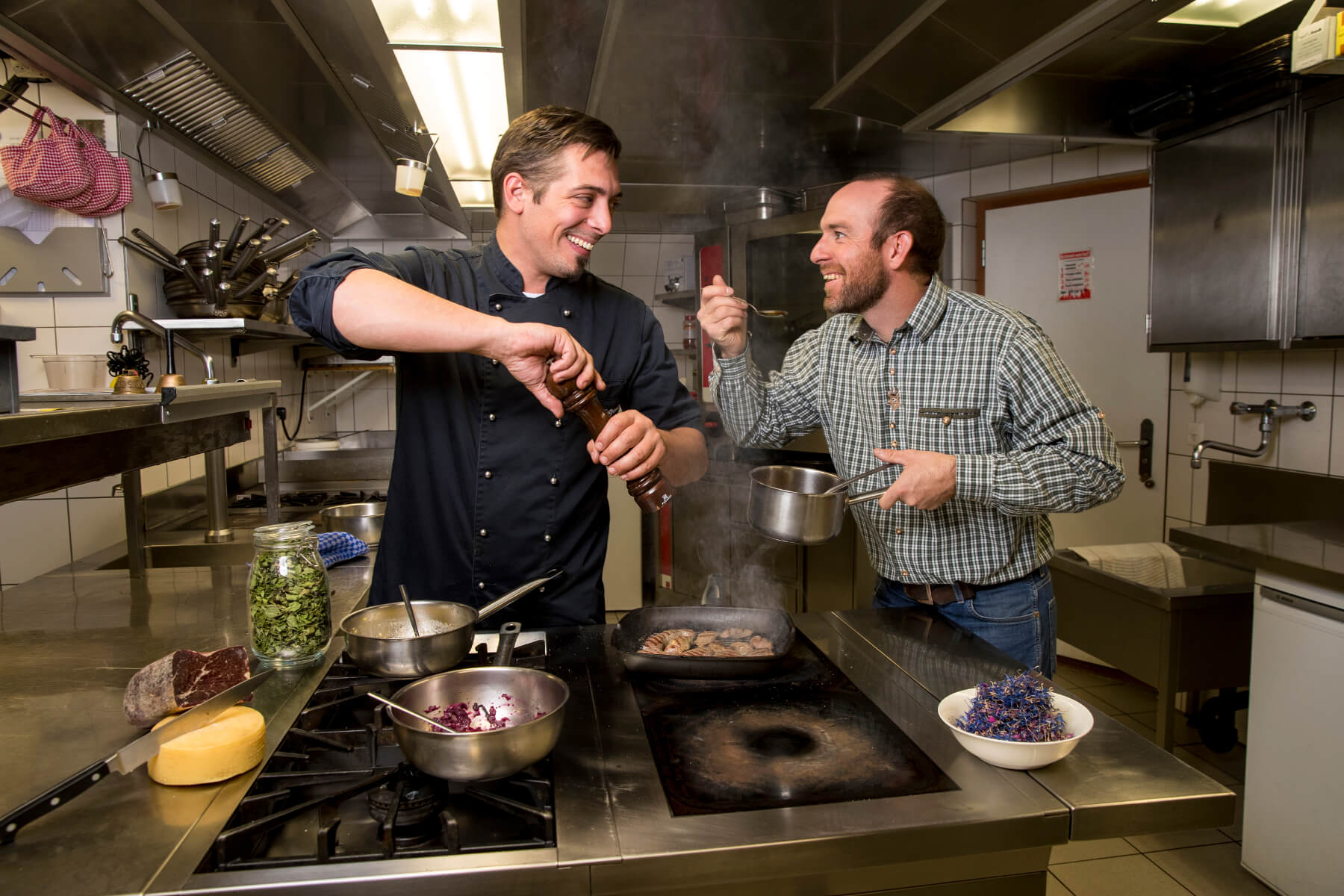 Le chef cuisinier Timo (à g.) travaille chez Robi Perren.